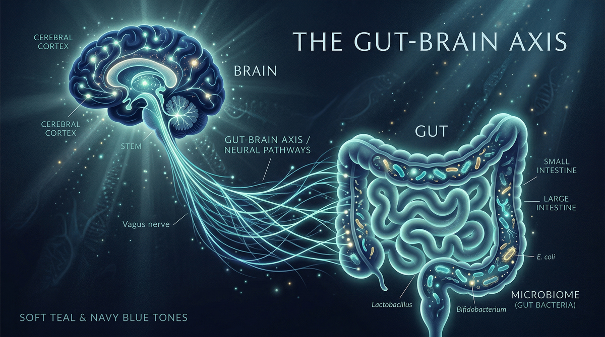 The gut is far more than a tube for digestion. It contains its own nervous system, dense immune tissue and a complex microbial ecosystem, forming an integrated gut-brain-immune axis that many authors now describe as a functional second brain (Furness, 2012; Carabotti et al., 2015).