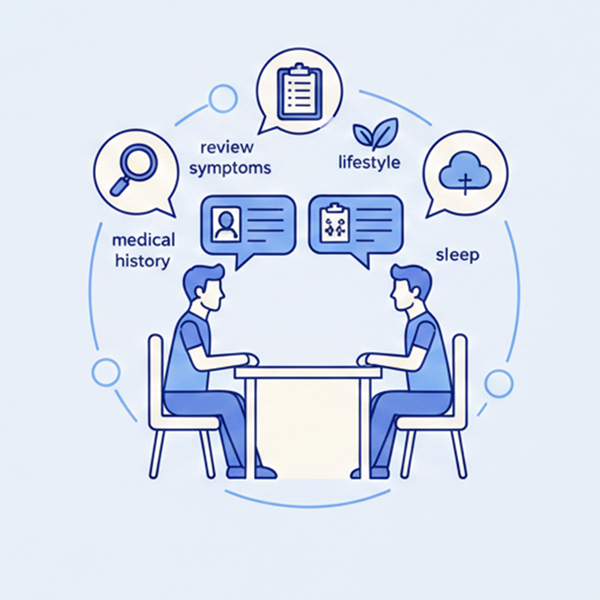 We start by understanding you. We review your symptoms, medical history, lifestyle factors, and current medications. We also screen for relevant health risks (including sleep apnoea) to ensure we have the full picture.
